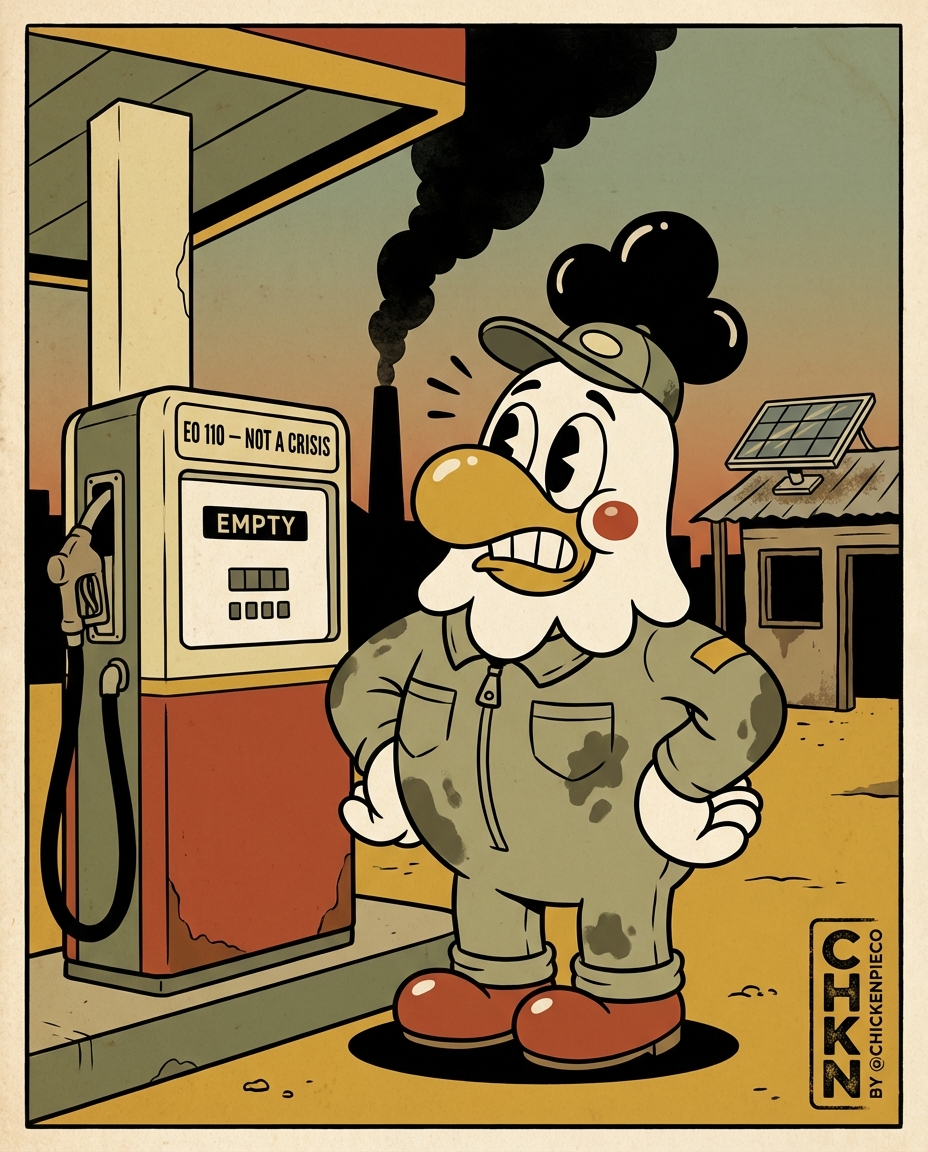 The satire writes itself — because the contradiction does the heavy lifting. Coal power reversals are now being fast-tracked, the exact fossil fuel path climate scientists have warned against. The Philippines, once a renewable energy pioneer in Southeast Asia, is now scrambling backward at emergency speed. EO 110 doesn't solve the energy crisis. It acknowledges one — in the most Marcos way possible: by announcing you're not in one.