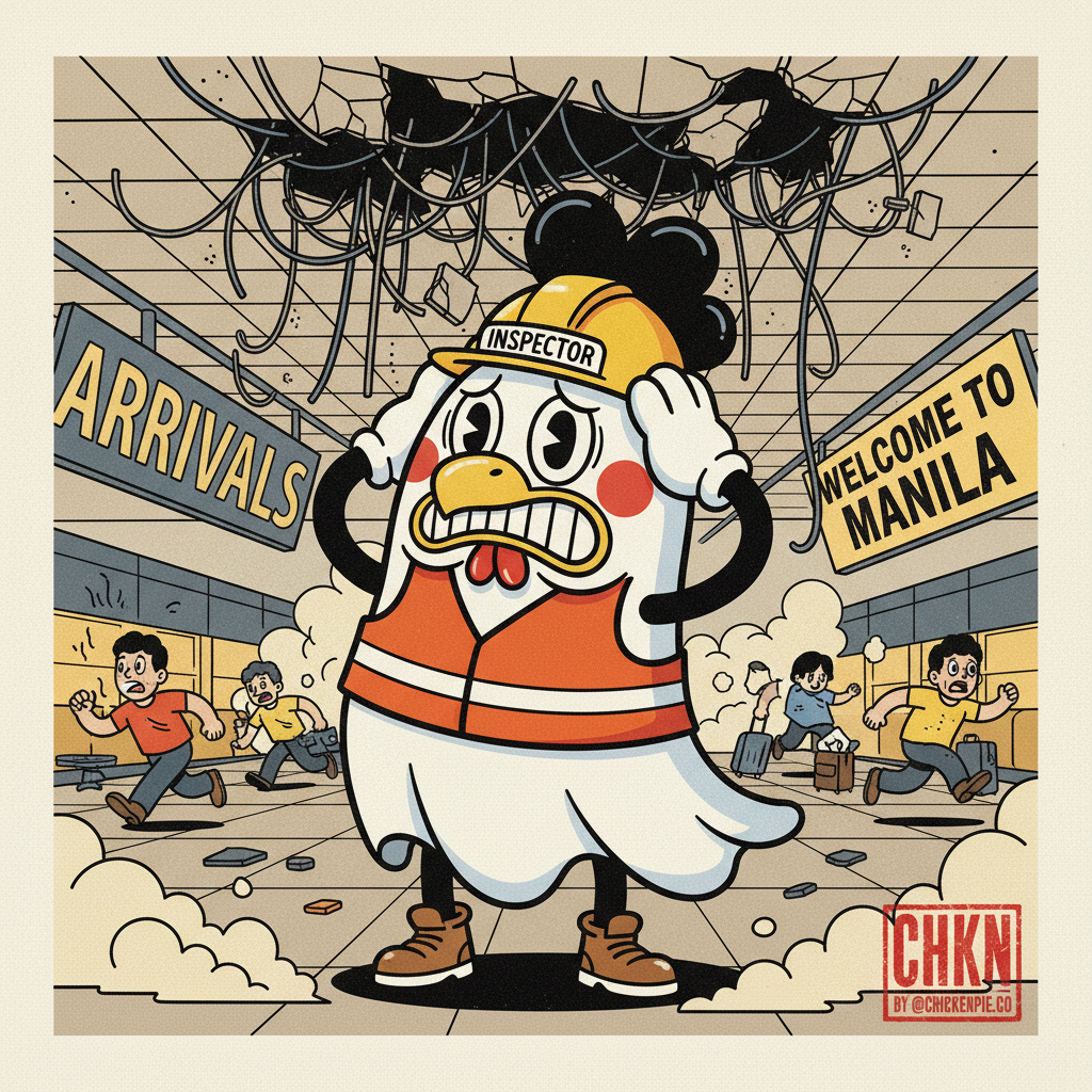 As Chester walked through the damaged area, he couldn't help but notice the irony: chickens are known for their constant vigilance, always scanning for threats from above. Maybe what Philippine infrastructure needs isn't more consultants, contractors, or committees — just a few chickens with clipboards.
